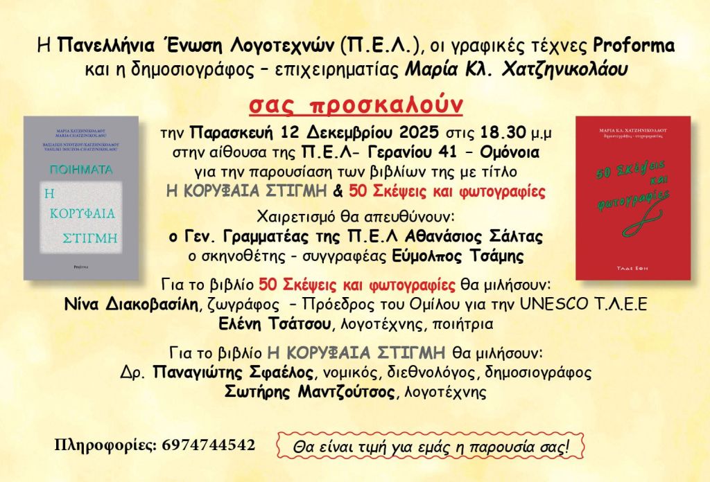 Λάβαμε και ανακοινοποιούμε την κάτωθι πρόσκληση για την παρουσίαση των βιβλίων της συγχωριανής μας Μαρίας Κλ. Χατζηνικολάου.